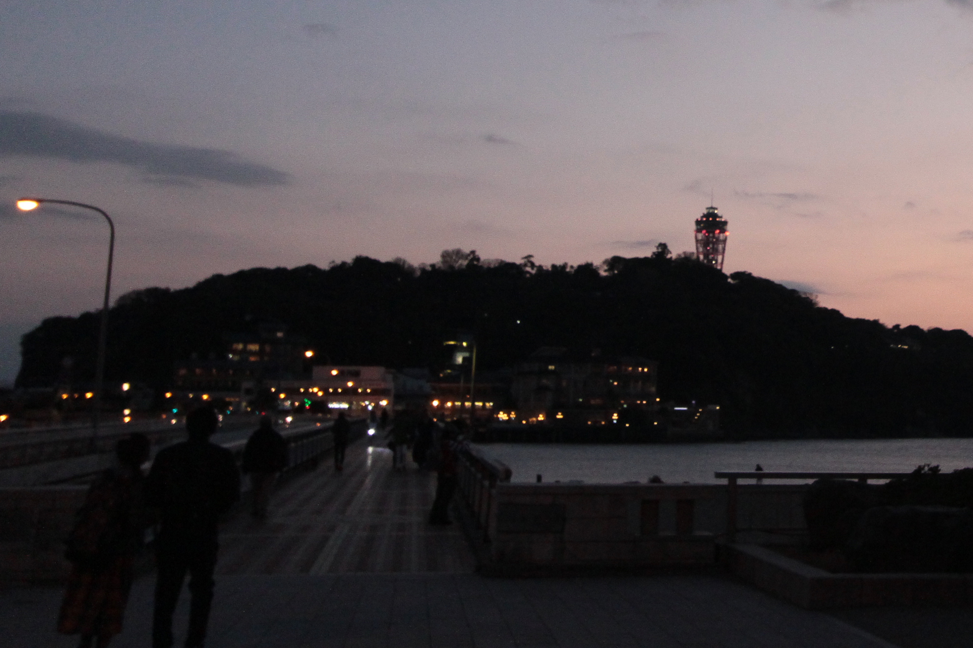 名:江の島弁天橋から見た夕暮れのシーキャンドル